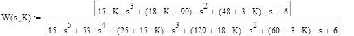 1. Вначале по передаточным функциям отдельных звеньев и формуле (1.1) для передаточной функции замкнутой системы получено в явном виде выражение (2.2), которое последовательно приведено к дробно-рациональной форме отношения двух полиномов. Наивысший порядок степени знаменателя (шестой) определяет порядок системы.