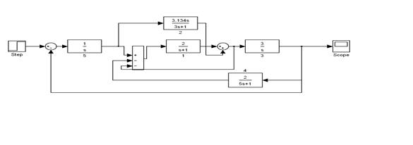 3. Упростим полученную структурную схему путем преобразования передаточных функций, последовательно и параллельно соединенных передаточных звеньев. При этом структурная схема приобретет вид изображенный на Рис.5