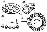 Рис.5 - Схемы многорядных Рис.6 - Схемы цепных накопительных накопительных механизмов магазинов
