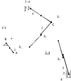 | 7. | Центры тяжести S1 , S2 ,S3 , S4 ,S5 расположены посередине соответствующих звеньев | |