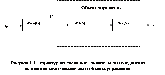 На рисунке 1.1 приведена структурная схема последовательного соединения исполнительного механизма и объекта управления.