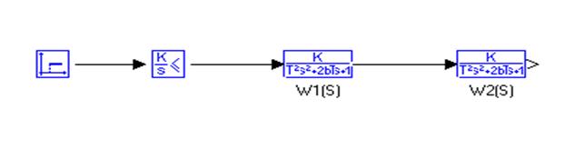 На рисунке 1 приведена структурная схема последовательного соединения исполнительного механизма и объекта управления. Необходимо перевести данную схему в блоки программного продукта МВТУ. При этом используется ограничения механизма постоянной скорости (1) и численные значения параметров исполнительного механизма и объектов управления, приведенные в таблице 1.