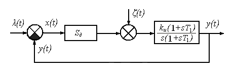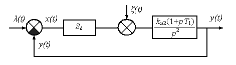 Оптимизируем параметры kи2 и T1 в системе (рис.5), в которой задающее воздействие λ(t) – детерминированная функция, а возмущение ─ случайный процесс ξ(t).