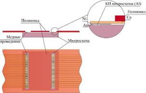 Рис. 1. Микросборка на медь-полиимидном носителе:
