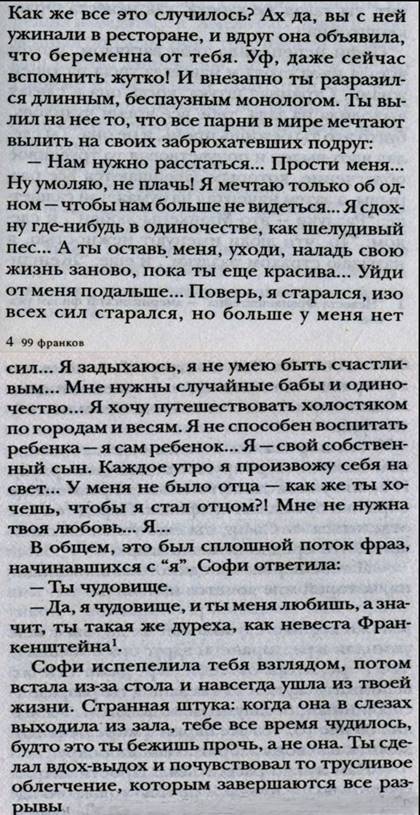 2) Фрагмент аналогичной сцены из книги Ф. Бегбедера «99 франков»