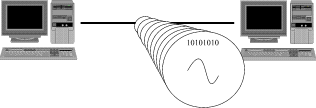 В ЛВС с прямой (не модулируемой) передачей информации всегда может существовать только одна станция, передающая информацию. Для предотвращения коллизий в большинстве случаев применяется временной метод разделения, согласно которому для каждой подключенной рабочей станции в определенные моменты времени предоставляется исключительное право на использование канала передачи данных. Поэтому требования к пропускной способности вычислительной сети при повышенной нагрузке снижаются, например, при вводе новых рабочих станций. Рабочие станции присоединяются к шине посредством устройств ТАР (англ. Terminal Access Point - точка подключения терминала). ТАР представляет собой специальный тип подсоединения к коаксиальному кабелю. Зонд игольчатой формы внедряется через наружную оболочку внешнего проводника и слой диэлектрика к внутреннему проводнику и присоединяется к нему.