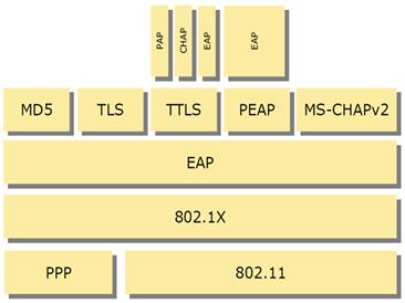 Функції аутентифікації покладаються на протокол ЕАР, який сам по собі є лише каркасом для методів аутентифікації. Вся перевага протоколу в тому, що його досить просто реалізувати на аутентифікаторі ( точці доступу ), так як їй не потрібно знати ніяких специфічних особливостей різних методів аутентифікації. Аутентифікатор служить передаточним ланцюгом між клієнтом і сервером аутентифікації. Самих методів аутентифікації існує достатньо багато: