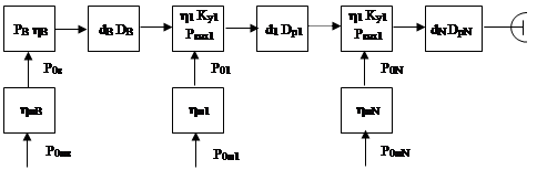 ККД підсилюючого тракту може бути знайдено, як відношення вихідної потужності Рвих до суми потужностей р0 i , які підводяться від джерела живлення до каскадів підсилення: