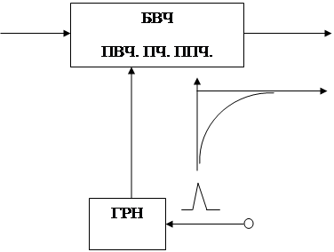 Така функціональна схема приведена на рис. 3. Пусковий імпульс 1 від модулятора РЛС, генеруємий одночасно з зондувальним імпульсом, запускає генератор регулюючої напруги (ГРН). У початковий момент часу напруга Uр взагалі може замикати прийомний тракт, здійснюючи «бланкування» приймача. Потім по мірі зменшення U р підсилення приймача збільшується, доходячи до максимально можливого. Таким чином підсилення виявляється зв'язаним з дальністю. Визначена форма і швидкість зміни Uр (t) встановлюються в залежності від конкретних умов. Система ЧРП є автономною, не зв'язаною з інтенсивністю вхідного сигналу в кожен даний момент часу.