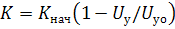 В ідеальному випадку вихідна напруга приймача (підсилювача) повинна залишатися незмінною після досягнення деякого значення Uвих min , що забезпечує нормальну роботу кінцевої апаратури. Це значить, що коефіцієнт підсилення повинний змінюватися за законом [9]