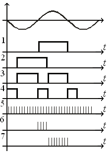 Сигнал с выхода квантователя поступает на элементы “И” непосредственно и через инвертор. На другие входы элементов “И” подается последовательность коротких импульсов, следующих с частотой сигнала. В зависимости от знака рассогласования фазы между входным и опорным напряжениями на соответствующий элемент И подается высокий уровень напряжения и на его выход проходят импульсы опорного сигнала.