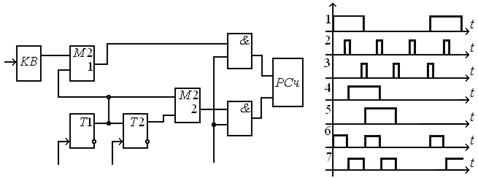 Рис.14. Схема и временные диаграммы функционирования дискриминатора для системы тактовой синхронизации.