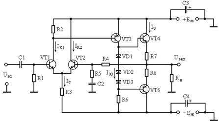 де опір Rе = R6, тому що на вихідні транзистори практично працює джерело з опором R6 (опір колектора VT3 значний).