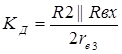 Опір навантаження диференційного каскаду визначається паралельним з’єднанням R2 і вхідним опором з боку Rбе транзистора VT3. Тоді коефіцієнт підсилення диференціальної пари