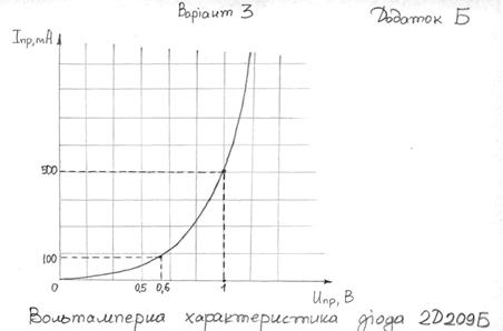 11. На вхідній ВАХ, графік 2 додаток А, позначаємо точку А, котра відповідає Ібо , і за графіком знаходимо Uбео = 0,7 В, а для значень Ібмакс і Іб мін (точка Б і В на графіку) - відповідно Uбе макс = 0,77 В і Uбе мін = 0,71 В.
