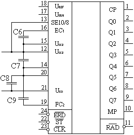Для работы в восьмиразрядном режиме вход SE10/8 соединяется с шиной отрицательного источника питания Ucc 2.
