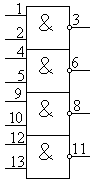 (Ucc = 5,25 В; U1 вых ³ 2,7 В; U0 вых £ 0,5 В; Iпотр £ 0,5 мА; I0 вх ³ -0,4 мА; I1 вх £ 0,02 мА;