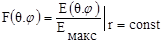 6. Характеристика направленості – це залежність амплітуди напруженості поля від напрямку в просторі на однаковому, досить великому, відстані від антени. На однаковій відстані від антени, але в різних напрямках, величина напруженості поля різна. Інакше кажучи, антена має спрямовану властивість. Графічне зображення характеристики направленості називають діаграмою направленості. Для порівняння різних антен по направленості користаються нормованою характеристикою направленості, у якої максимальне значення дорівнює одиниці. Вона виходить шляхом розподілу всіх значень характеристик направленості на максимальне значення: