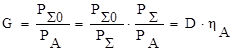 При цьому вважається, що ненаправлена антена має ККД рівний 100%, тобто РАо=Р∑0, тому вираження для коефіцієнта підсилення G можна записати у виді: