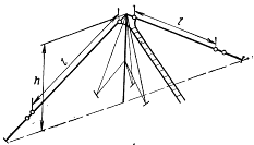 Дальність зв'язку в русі до 300-350 км можна забезпечити тільки з використанням іоносферної хвилі, тому що енергетичні втрати при її проходженні через іоносферу відносно невеликі. Але для цього потрібна антена з ефективним випромінюванням майже в зеніт. Цій вимозі задовольняють кришеві антени, виконані у виді двох похилих штирів (рис.13), у виді симетричного вібратора (рис.14. рис.16) і у виді рамок (рис.17). Такі антени називаються антенами зенітного випромінювання (АЗВ) і застосовуються вони в радіостанціях Р-140, Р-161А2М і КШМ. Про принципову можливість роботи іоносферною хвилею з антеною у виді двох похилих штирів на далекі відстані свідчать приведені на рис.13 діаграми направленості в горизонтальній і вертикальній площинах.