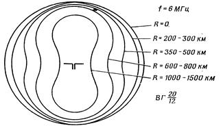 Діаграми направленості в горизонтальній площині показані на рис.10. З них випливає, що при роботі на відстані до 300 км антену можна вважати ненаправленою і немає необхідності її орієнтувати. При роботі на відстані, що перевищують 300 км, антену варто орієнтувати так, щоб напрямок на кореспондента був перпендикулярним до площини вібратора.
