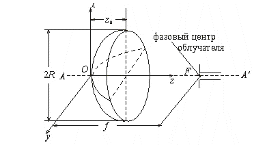 3) отклонение волнового фронта излучаемого облучателем волны от сферической формы.