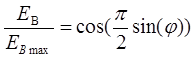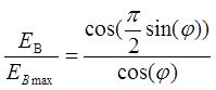 ЕВ max – поле в направлении максимального излучения (φ=0).