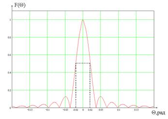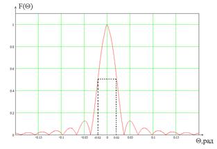 Где θ – угол в горизонтальной плоскости, отсчитываемый от нормали к щели.
