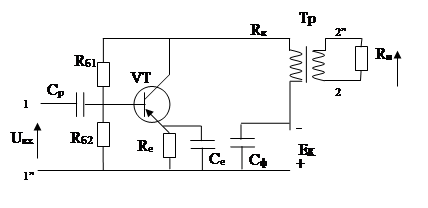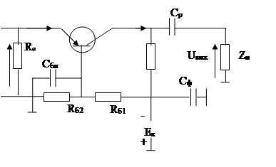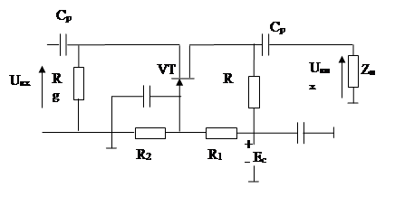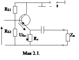 Елементи Rб1,Rб2, Rезабезпечують потрібний режим роботи по постійному струму та його стабілізацію; Rе навантажує ланцюг емітера та служить для виділення підсиленого сигналу, що є одночасно опором ВЗЗ по змінному струму.