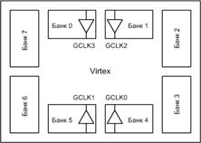 Кожна сторона кристала мікросхеми розділена на два банки. Кожен банк має декілька контактів