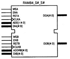 Кожен блок пам'яті, це повністю синхронне двохпортове ОЗУ з незалежним управлінням для кожного порту. Розмірність шини даних для обох портів може бути конфігурована незалежно, що дозволяє створювати перетворювачі розмірності шини. У Табл. 2 показані можливі співвідношення размерностей шин даних і адреси.
