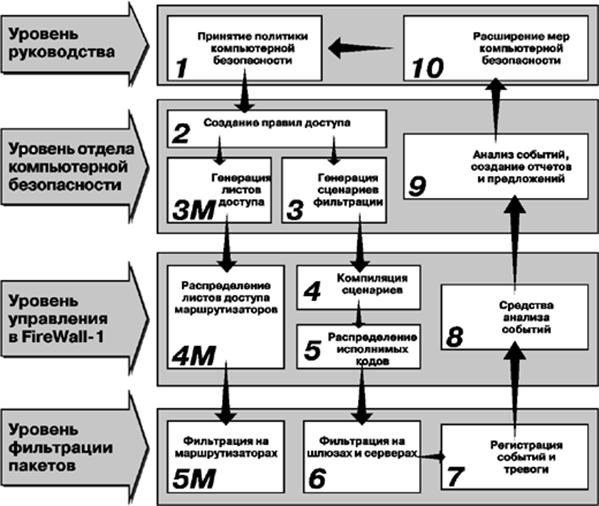 Информационная безопасность должна рассматриваться как составная часть общей безопасности банка—причем как важная и неотъемлемая ее часть. Разработка концепции информационной безопасности должна обязательно проходить при участии управления безопасности банка. В этой концепции следует предусматривать не только меры, связанные с информационными технологиями (криптозащиту, программные средства администрирования прав пользователей, их идентификации и аутентификации, “брандмауэры” для защиты входов—выходов сети и т. п.), но и меры административного и технического характера, включая жесткие процедуры контроля физического доступа к автоматизированной банковской системе.
