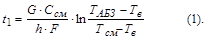 Необходимо сравнить время остывания смеси t1 , ч, со временем ее доставки к месту укладки t2 , ч (t1 ≥t2 ).
