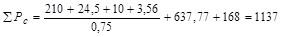 ∑РВ — то же, внутреннего освещения, кВт, ∑РВ =5∙269,89+15∙318+9∙132+20∙72=8,75;