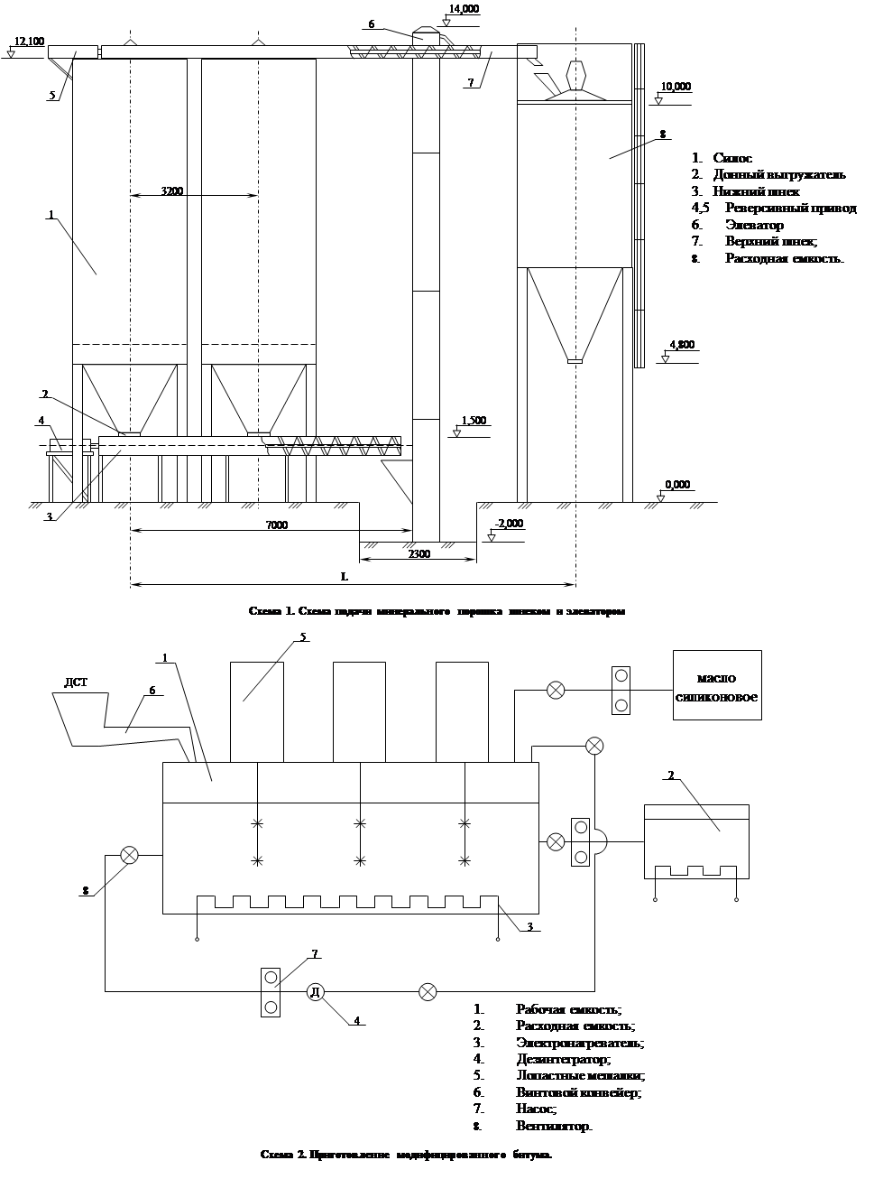 Сама схема приводится в конце РПЗ. Модифицированный битум — органическое вяжущее, полученное путем смешивания битума с сыпучим модификатором и маслом. Его приготавливаю с целью получения органического вяжущего с наиболее лучшими характеристиками (прочность, морозостойкость, пластичность и др.) по сравнению с обычным битумом.