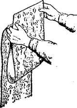 стопы и промазывают в два приема, чтобы они несколько отсырели. Промазанное полотнище подается мастеру для наклейки (рис. 11.10). Перед оклейкой обоями необходимо промазать стены клейстером у галтелей, наличников, в углах и у карниза.