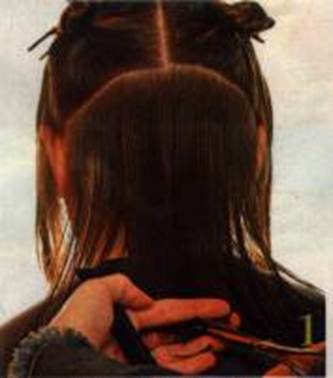 Перейти на среднюю затылочную зону, подстричь волосы вертикальными проборами методом «выкройки».