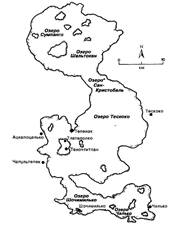 Большая часть Мексиканской долины была покрыта системой сравнительно неглубоких соленых озер. Называвшиеся в доиспанский период часто общим именем «озеро Луны», они занимали в долине около 2800 кв. км (70 х 40 км). Во время дождливого летнего сезона почти треть долины покрывала вода, однако в сухое время года оставалось пять отдельных озер: Сумпанго и Шалтокан на севере, Тескоко в центре, Чалько и Шочимилько на юге. Соленость этих озер была различной — южные и северные были менее соленые, чем центральное. Эта разница в солености и глубине озер имела огромное значение для земледелия.[3]