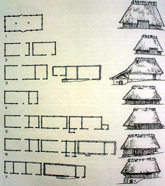 Традиційні : земляночного та напівземляночного типу (одно-, дво-, трикамерні); наземні без зовнішніх прибудов: (дво-, трикамерні); наземні із прибудовами (дво-, трикамерні).