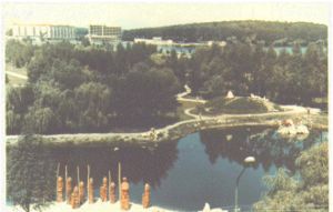 Тернопільський став видно на задньому плані. Іде спорудження парку. 70-ті.