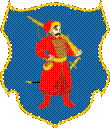 Проект герба Української Держави з тризубом Влодимира і стрільцем Війська Запорозького.