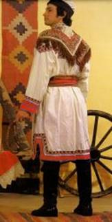 Богатством вышивки и разнообразием орнамента отличалась мужская одежда. одной из самых интересных принадлежностей мужской одежды являлся шупар - халат из домотканого белого холста. В прошлом веке его носили в основном пожилые мужчины и предводители свадьбы, а еще раньше в такое одеяние должны были облачаться жрецы во время жертвоприношений. В украшении мужского халата, кроме вышивки, обильно применялись шелковые нашивки. Особо старательно мастерицы исполняли наспинные узоры - они были крупными, выразительными, всегда с чертами монументальности. | ![]() |