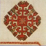 Несмотря на тесное отношение народов Поволжья с русским народом и между собой, их художественные культуры, испытывая определенное взаимовлияние, тем не менее сохраняют свои специфические особенности. И в этом отношении выделяется чувашская вышивка. Обожествляя явления природы, древние предки чувашей отразили свои языческие представления в орнаменте одежды и утвари. Так, вселенная изображалась в виде четырехугольника, образ великой богини посредством великого древа жизни, солнце - в виде круга или розетки и т.д. Таким образом орнамент весьма реалистично воспроизводил миропонимание наших предков. | ||||||||