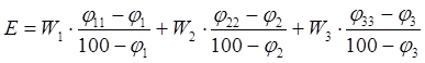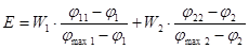 В частном случае, когда исходная смесь может быть разделена на компоненты в чистом виде, т.е φ max 1 = φ max 2 =1, показатель Е будет равен: