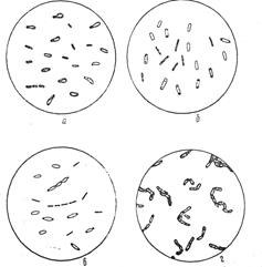 Рис. 2. Группа спорообразующих палочек: а - Вас. mesentericus globigii; б - Вас. mesentericus; в - Вас. subtilis; г - Вас. megatherium.