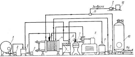 Рис. 2. Схема технологичекой линии производства йогурта термостатным способом