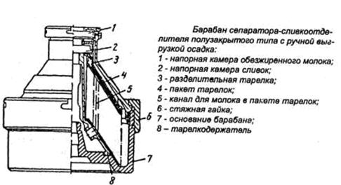 После работы барабана, не останавливая, надо промыть, пропустив вначале небольшое количество обезжиренного молока или воды, затем холодную воду для охлаждения барабана. Далее, остановив барабан, разбирают машину, тщательно чистят и моют все детали, а затем просушивают.