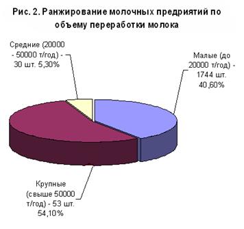3. Ранжирование молочных предприятий по объему переработки молока