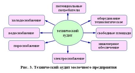 На каждом молочном предприятии есть общие и частные проблемы, связанные с переработкой сыворотки. На первом этапе выяснили, какой вид сыворотки на предприятии, каковы ее объемы. На втором этапе приступили к технологическому аудиту. Выяснили, каково обеспечение площадями, технологическим оборудованием, энергоресурсами (паром) и электрической энергией, водо- и хладоснабжением, инженерное обеспечение (технический персонал), месторасположение предприятия, а также кто является потенциальным потребителем продукции из сыворотки (рис. 3).