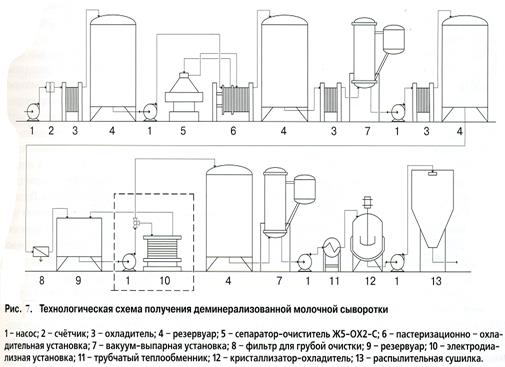 На рис. 7 представлена технологическая схема получения деминерализо-ванной молочной сыворотки с использованием электродиализных установок.